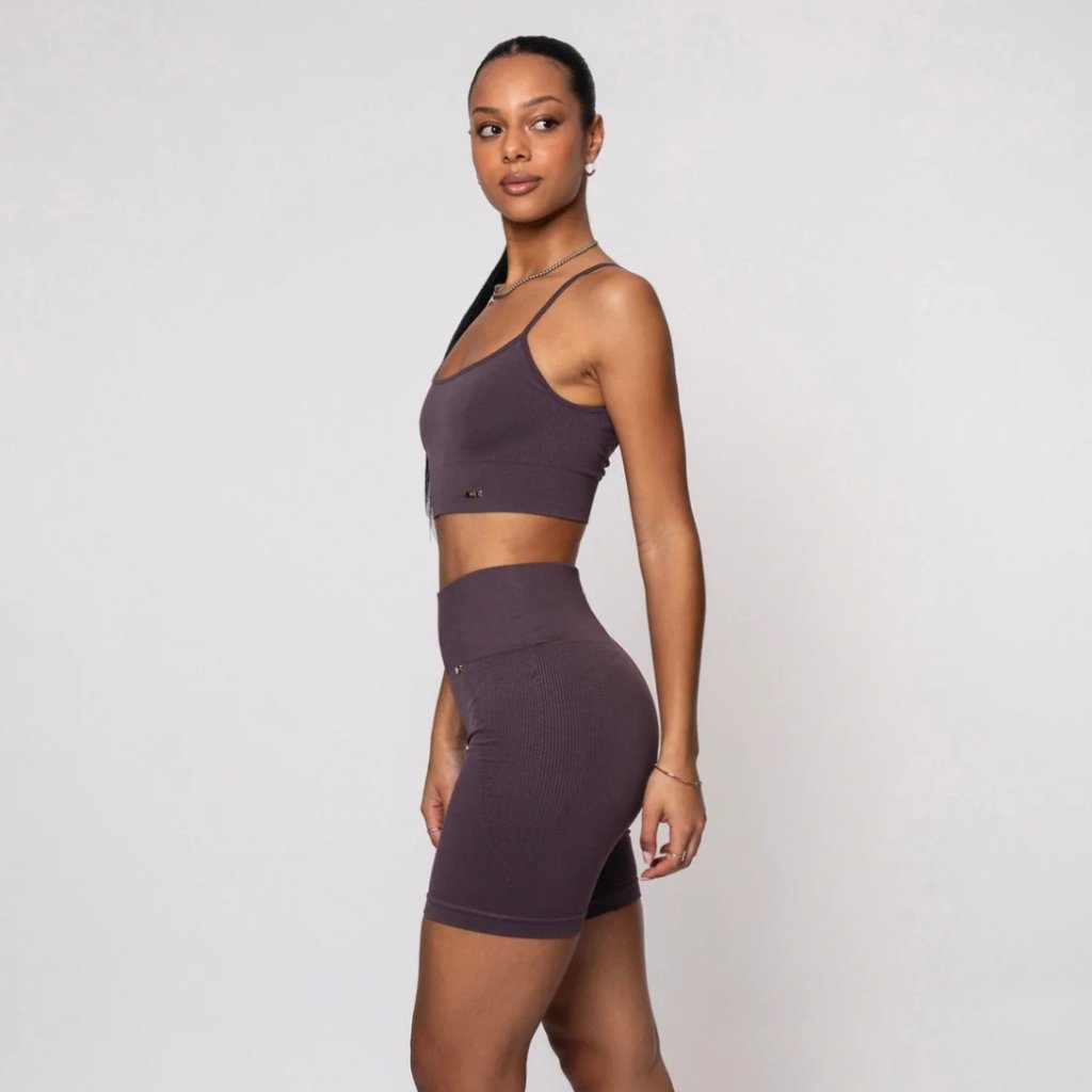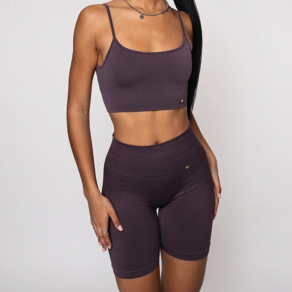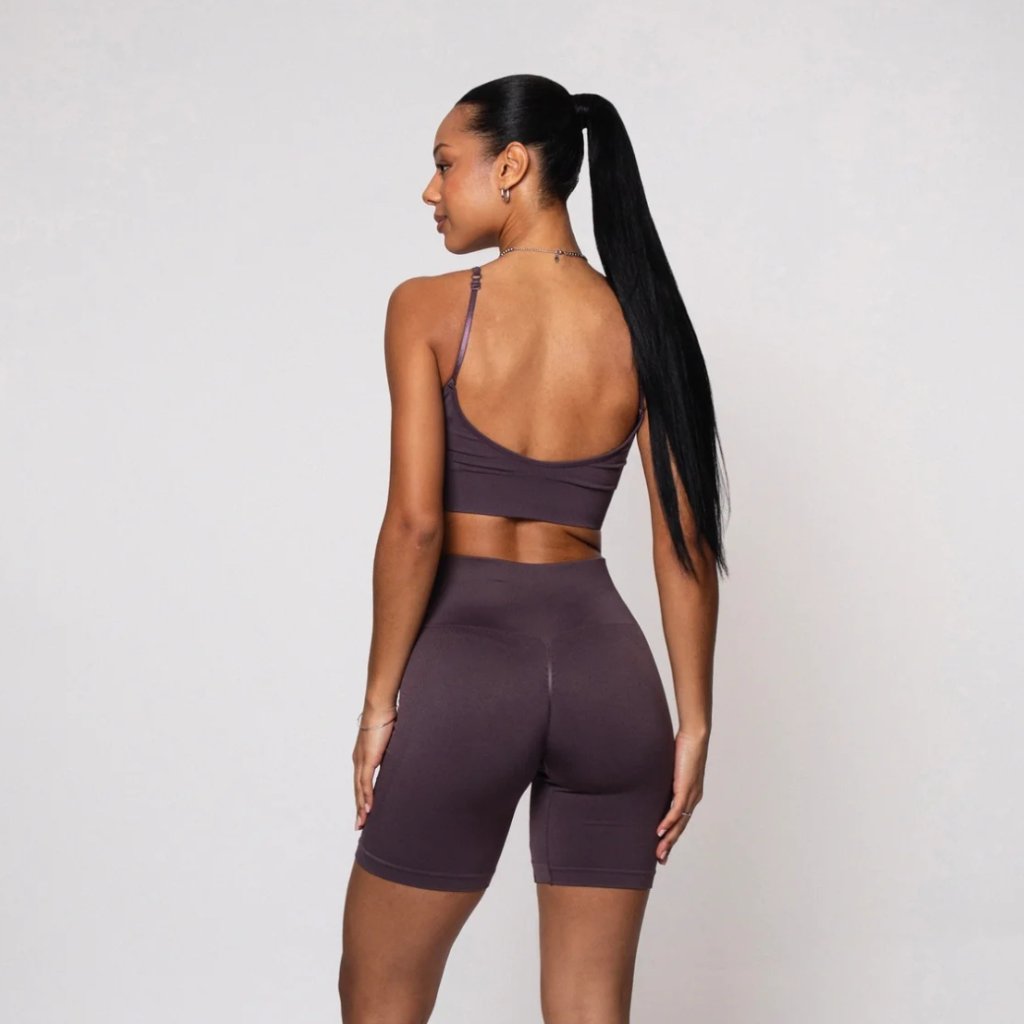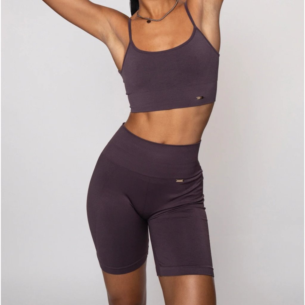 Pohodlné bezšvové šortky s vysokým pásom, ktorý jemne spevní oblasť brucha bez tlačenia. Nariasenie na zadnej strane vytvára prirodzený push-up efekt. Spodný lem nohavíc je široký a bez gumičiek, takže sa nezarezáva do nôh.