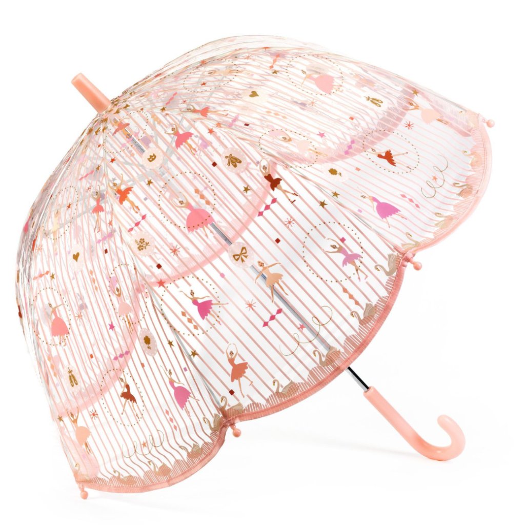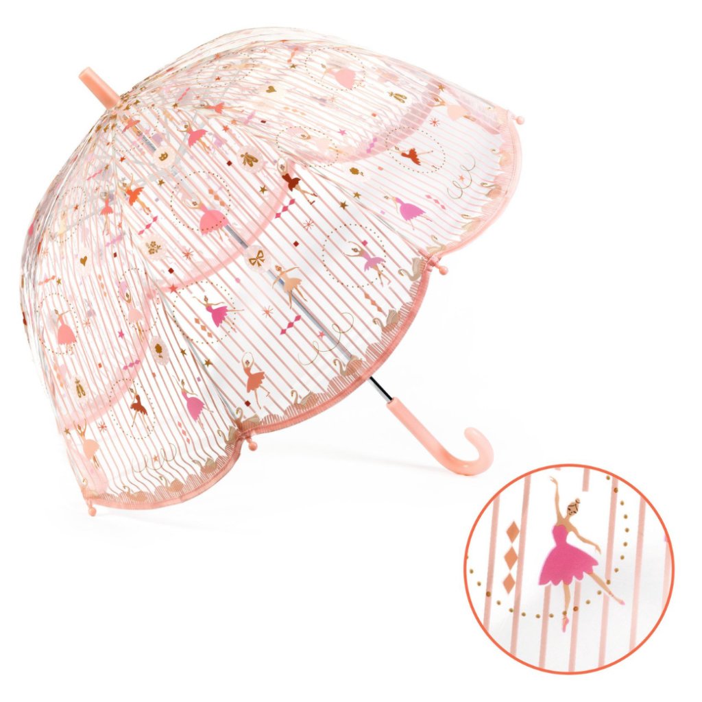 Štýlový dáždnik s ilustráciami baleríny, ktorý je nielen krásny, ale aj praktický. Vďaka priehľadnému prevedeniu dieťa vidí, kam kráča, a manuálne otváranie s bezpečnostným systémom zabráni zachyteniu prstov. Farebný doplnok, ktorý rozžiari každú daždivú prechádzku!
