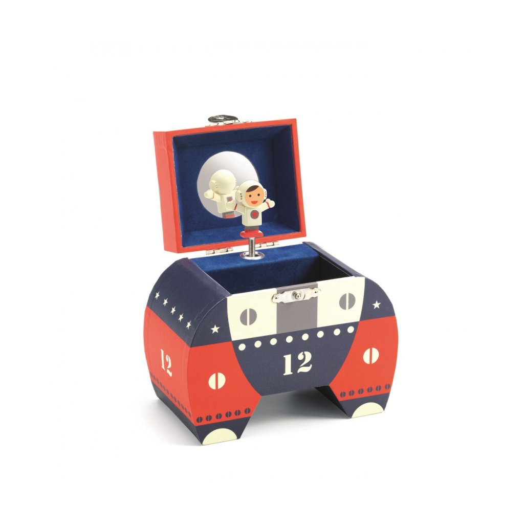 Hudební šperkovnice Polo 12 má tvar krásně dekorované rakety a je ideálním místem pro první dětské poklady a tajemství. Po otočení kličky a otevření víčka se objeví jemně vyřezávaný astronaut, který se otáčí před kulatým zrcátkem na melodii „Take Me Out to the Ball Game“ od Alberta Von Tilzera. Měkký samet uvnitř chrání všechny drobnosti a vesmírné ilustrace dodávají šperkovnici opravdové dobrodružné kouzlo.