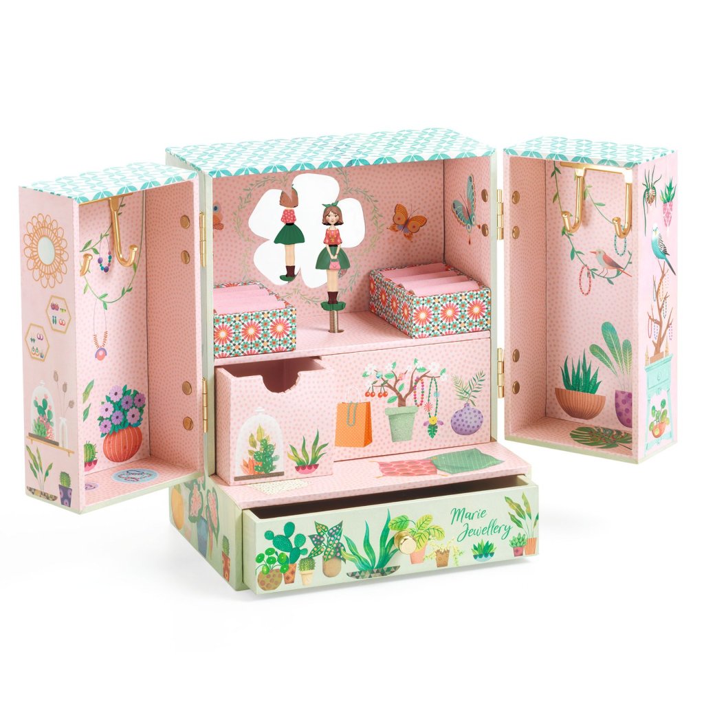 Hudební šperkovnice Secret Garden je nádherným místem pro všechny poklady, šperky i malé dětské tajnosti. Po otočení kličky a otevření se objeví jemně vyřezávaná dívka, která se otáčí před květinovým zrcátkem na melodii „Invitation to the Dance“ od Carla Marii von Webera. Uvnitř čeká spousta promyšlených úložných míst: velká zásuvka, malá zásuvka, dva držáky na prstýnky a čtyři zlaté háčky na náhrdelníky a náramky. Vše je vystlané měkkým sametem, aby byly šperky bezpečně uložené.