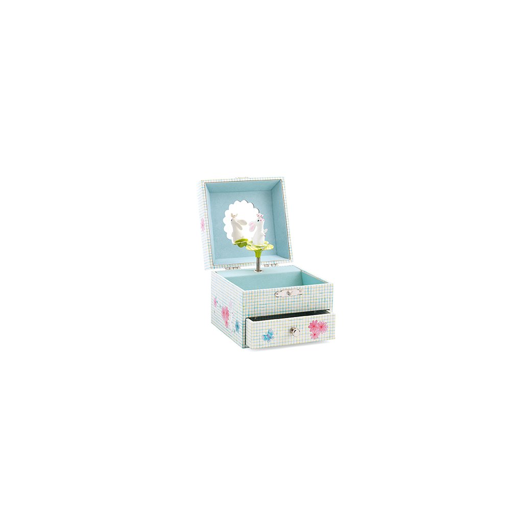 Hudební šperkovnice Sweet Rabbit's Song je něžným místem pro dětské poklady, šperky i tajemství. Po otočení kličky a otevření víčka se objeví jemně vyřezávaný králíček, který se otáčí před zrcátkem ve tvaru květiny na melodii „Let Me Call You Sweetheart“ od Lea Friedmana. Uvnitř je měkoučká sametová výstelka a praktický šuplíček na další drobnosti. Jemné ilustrace z ní dělají krásnou dekoraci do dětského pokoje.