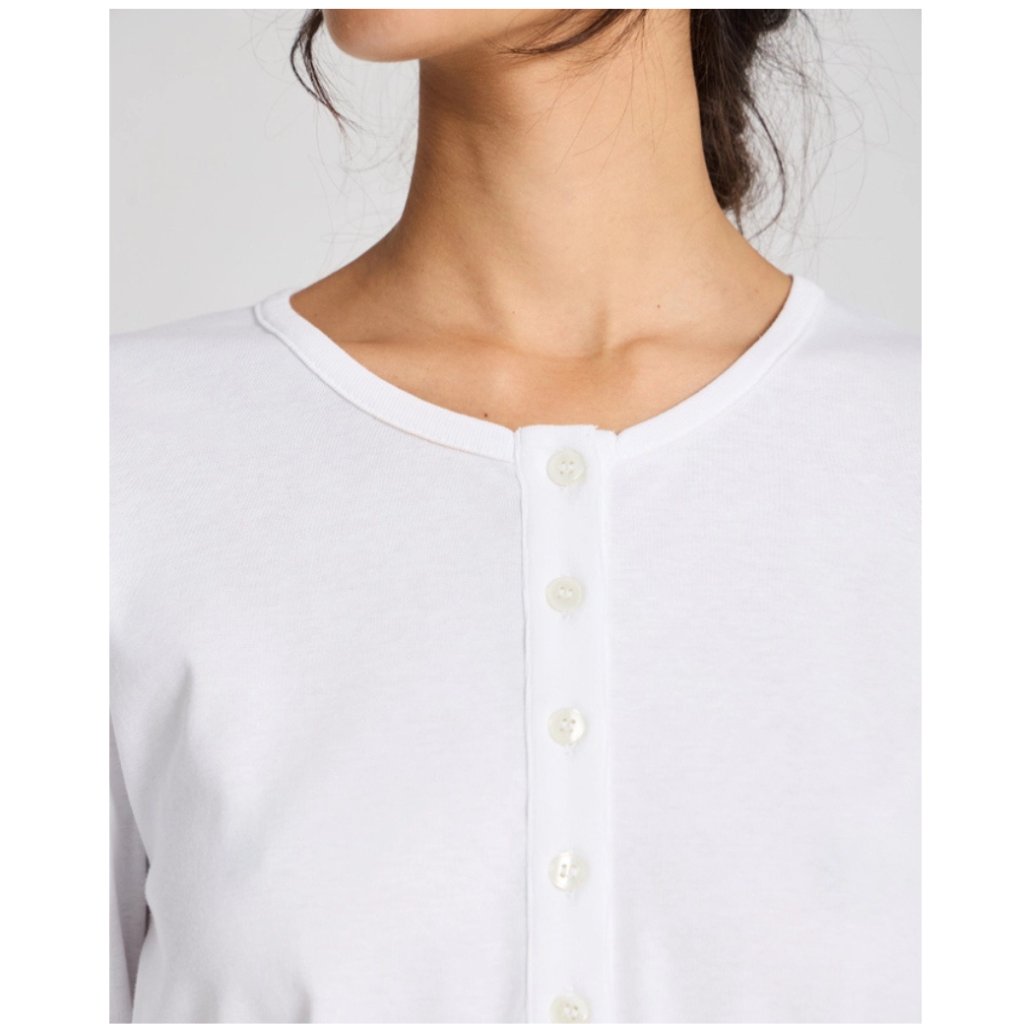 Klasické a pohodlné tričko Ida s dlhým rukávom je vyrobené zo 100 % organickej bavlny. Má okrúhly výstrih so zapínaním na gombíky pri krku (henley štýl), čo mu dodáva ležérny a nadčasový vzhľad. Tričko má priliehavý strih, preto pre voľnejší vzhľad odporúčame zvoliť o číslo väčšiu veľkosť.
