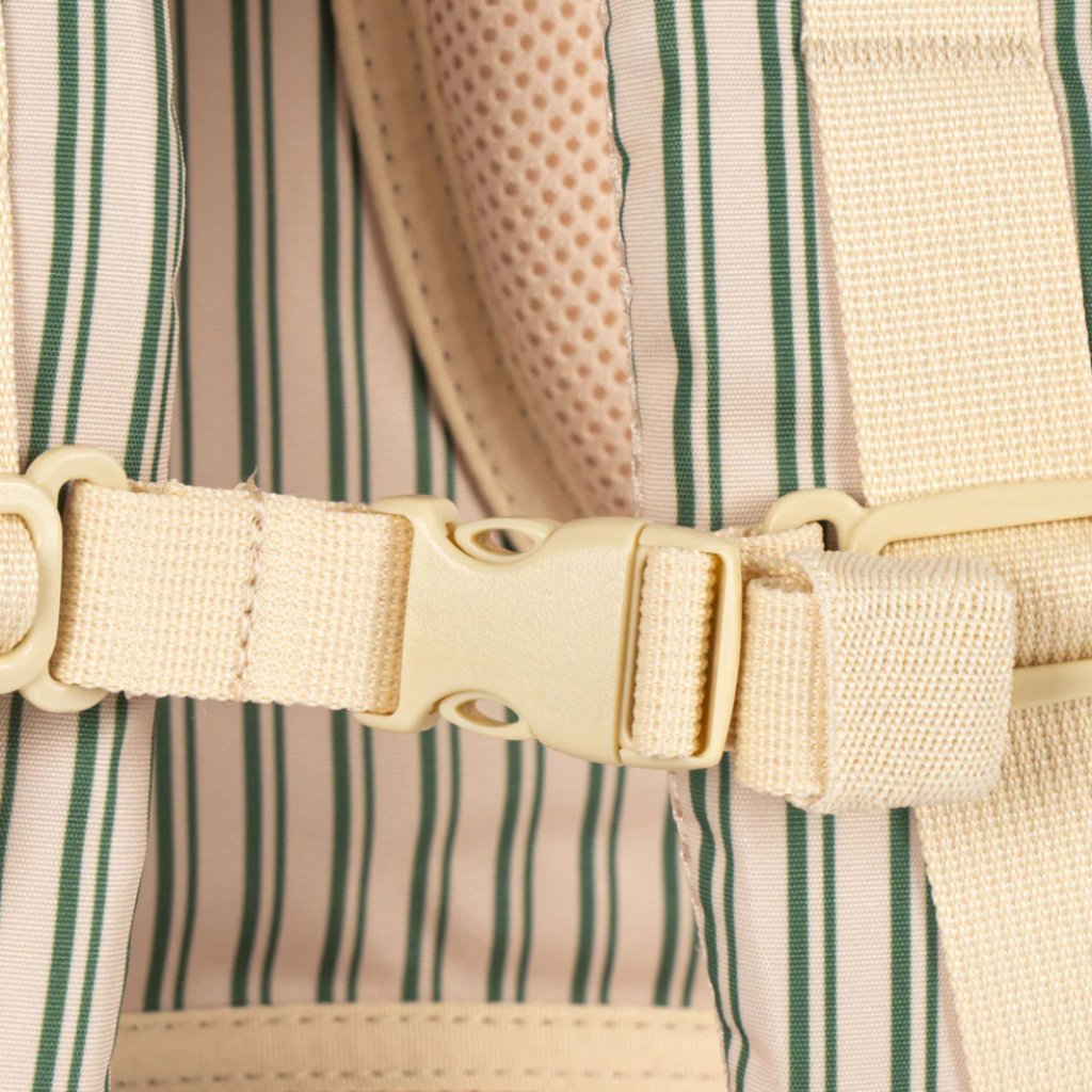 Vo vnútri nájdete jednu veľkú priehradku na učebnice, polstrované vrecko na desiatový box a vonkajšie vrecko na fľašu s nápojom. Zapínanie na pracku a sťahovaciu šnúrku zabezpečuje, že všetky veci zostanú na svojom mieste.