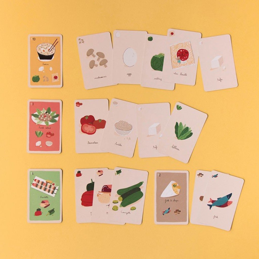 Hra obsahuje 17 karet receptů s pokrmy z celého světa a 63 karet ingrediencí.
