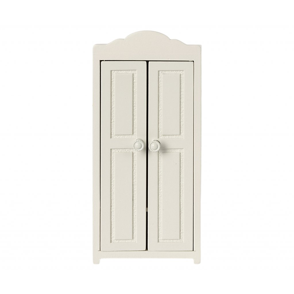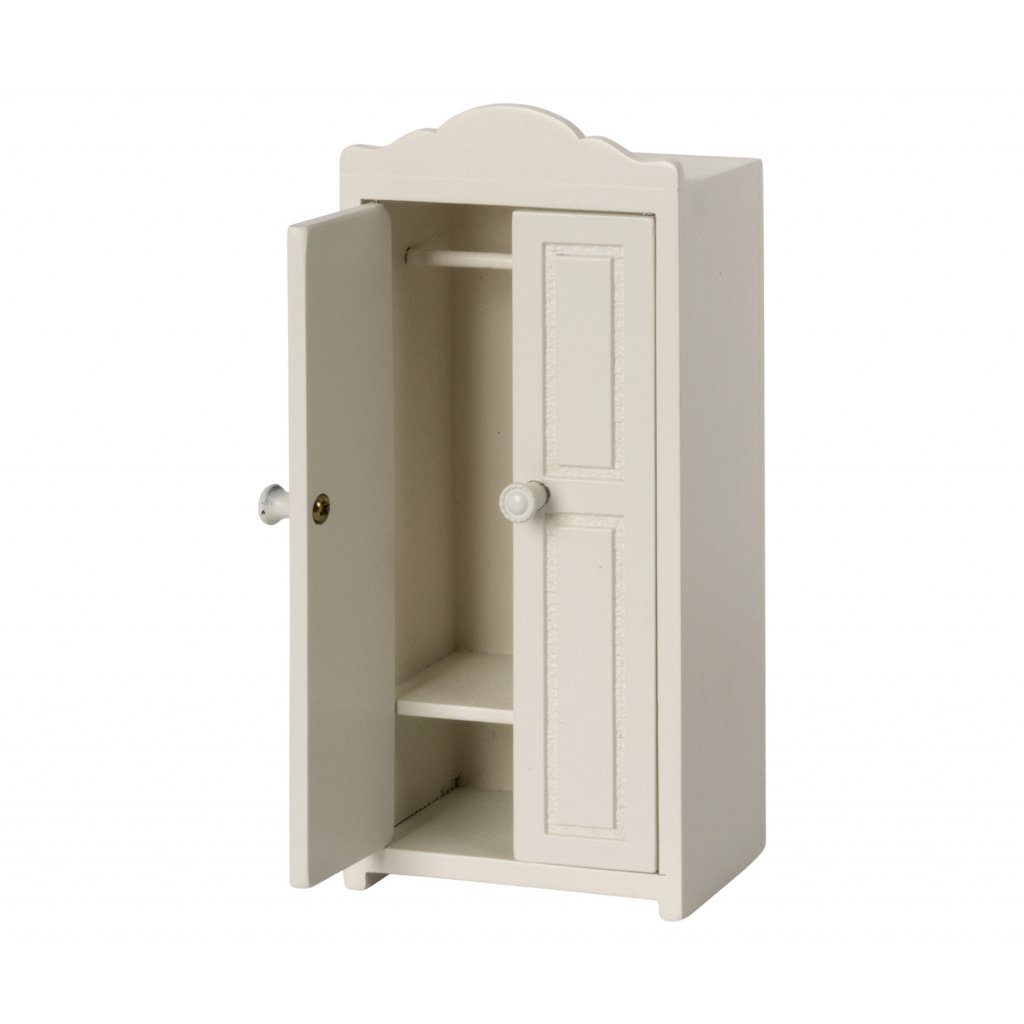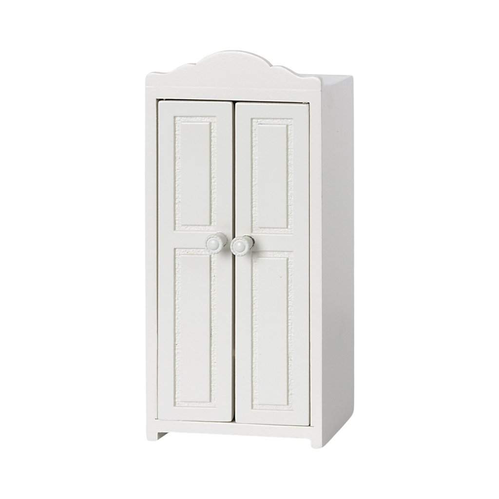 Bílá skříň pro myšky, ve které si mohou pověsit oblečení. Balení obsahuje také 3 zlatá ramínka.