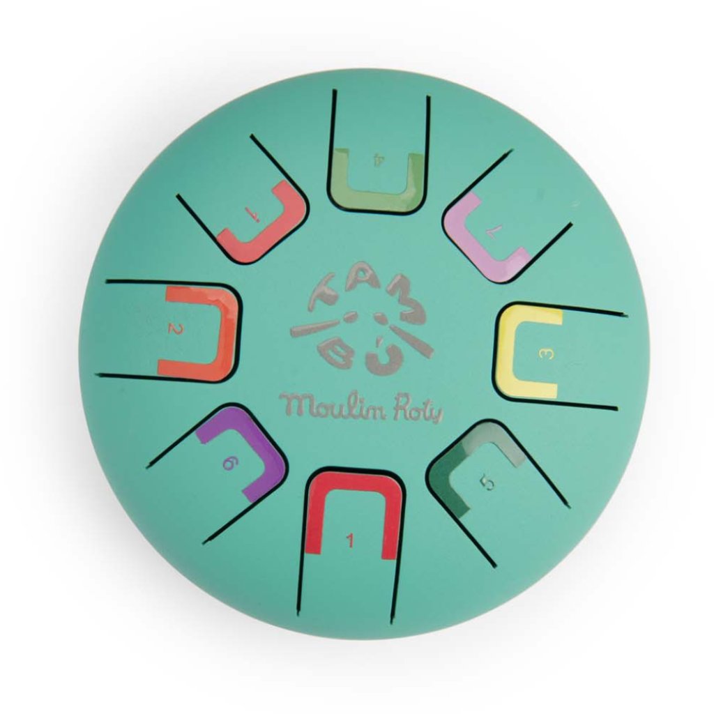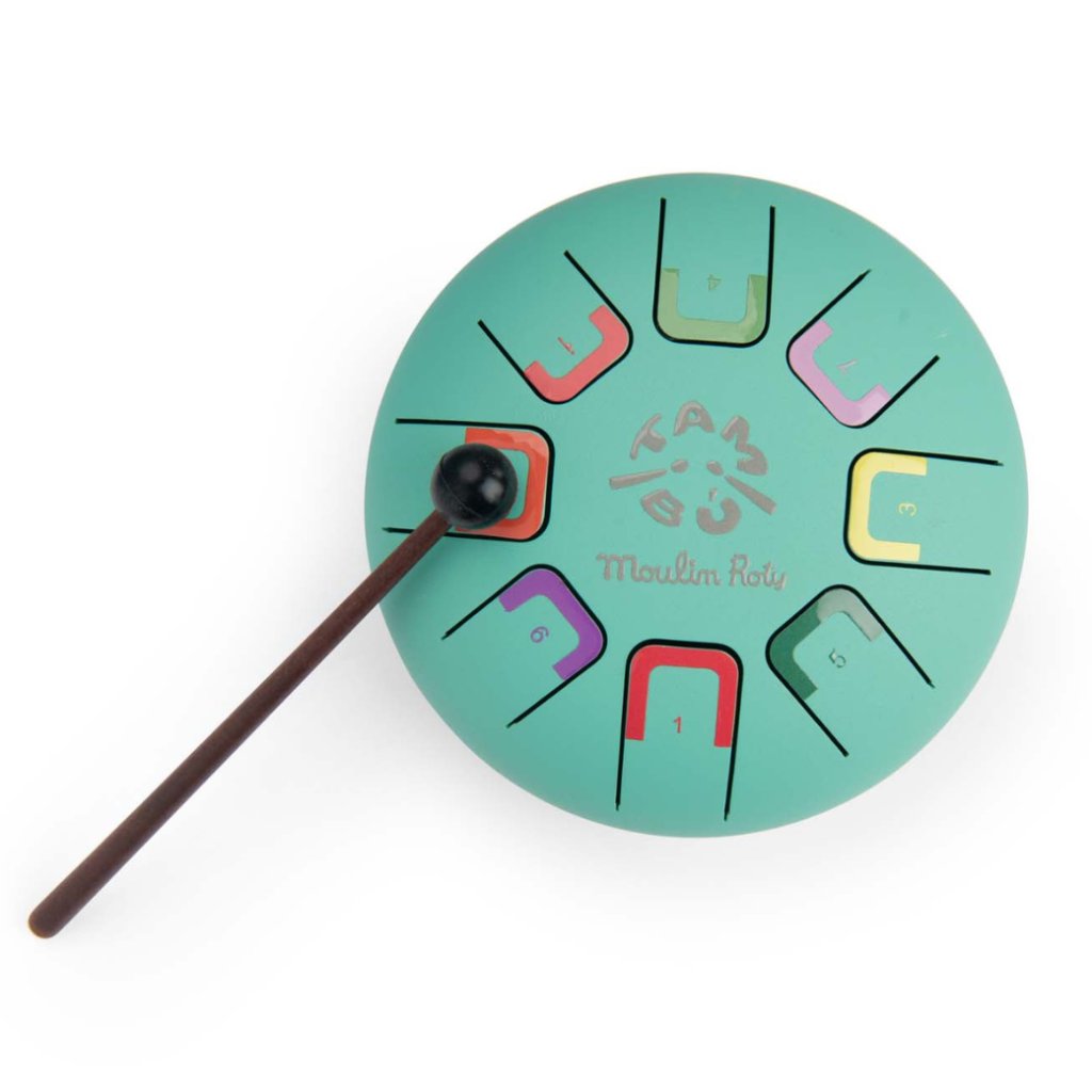 Malý bubienok s jazýčkami je skvelým hudobným nástrojom pre prvé zoznámenie detí so svetom perkusí. Vďaka ôsmim tónom ponúka možnosť vytvárať jednoduché melódie aj rytmy a deti ho môžu rozozvučať rôznymi spôsobmi – pomocou priložených paličiek, rukami alebo špeciálnymi prstovými paličkami.