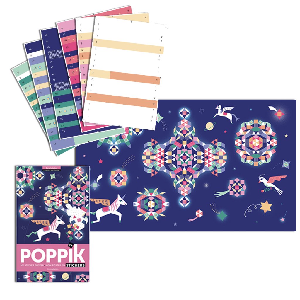 1plakát (1 m x 60 cm) + 1000 samolepek (22 barev). Spolu s jednorožcem proletět souhvězdími. Na velký, částečně barevný, plakát nalepí dítě barevné nálepky podle uvedených čísel. Postupně se objevují jako kouzlem hvězdná uskupení v podobě mandal. Pro děti od 7 let.