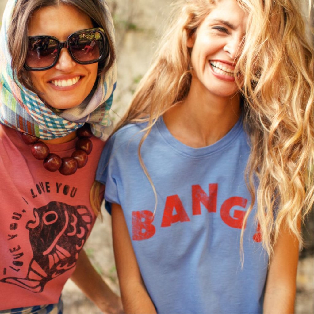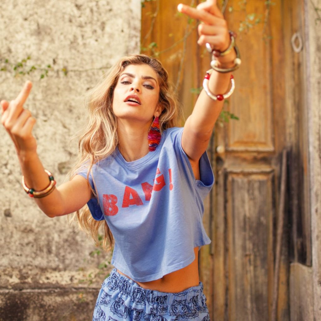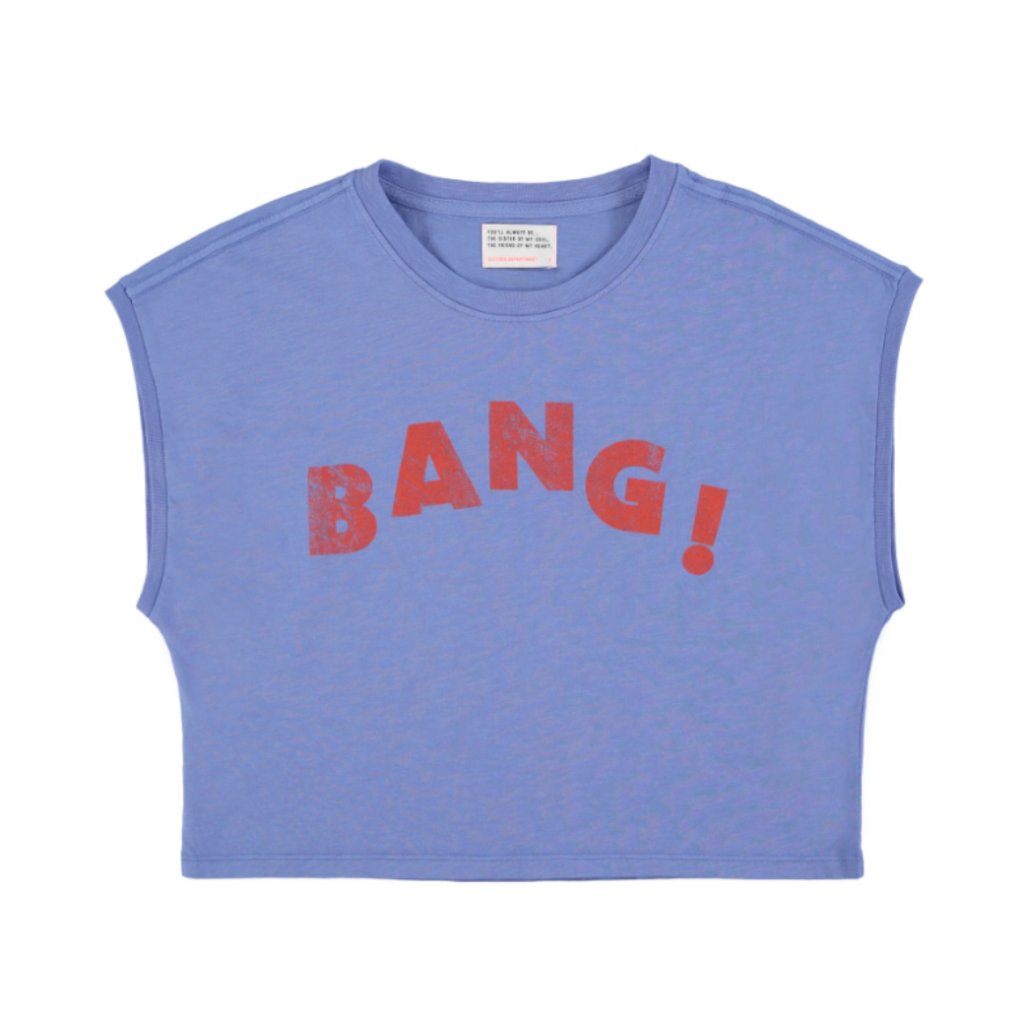 Dámske krátke tričko vyrobené zo 100 % bavlny s nápisom „Bang“.