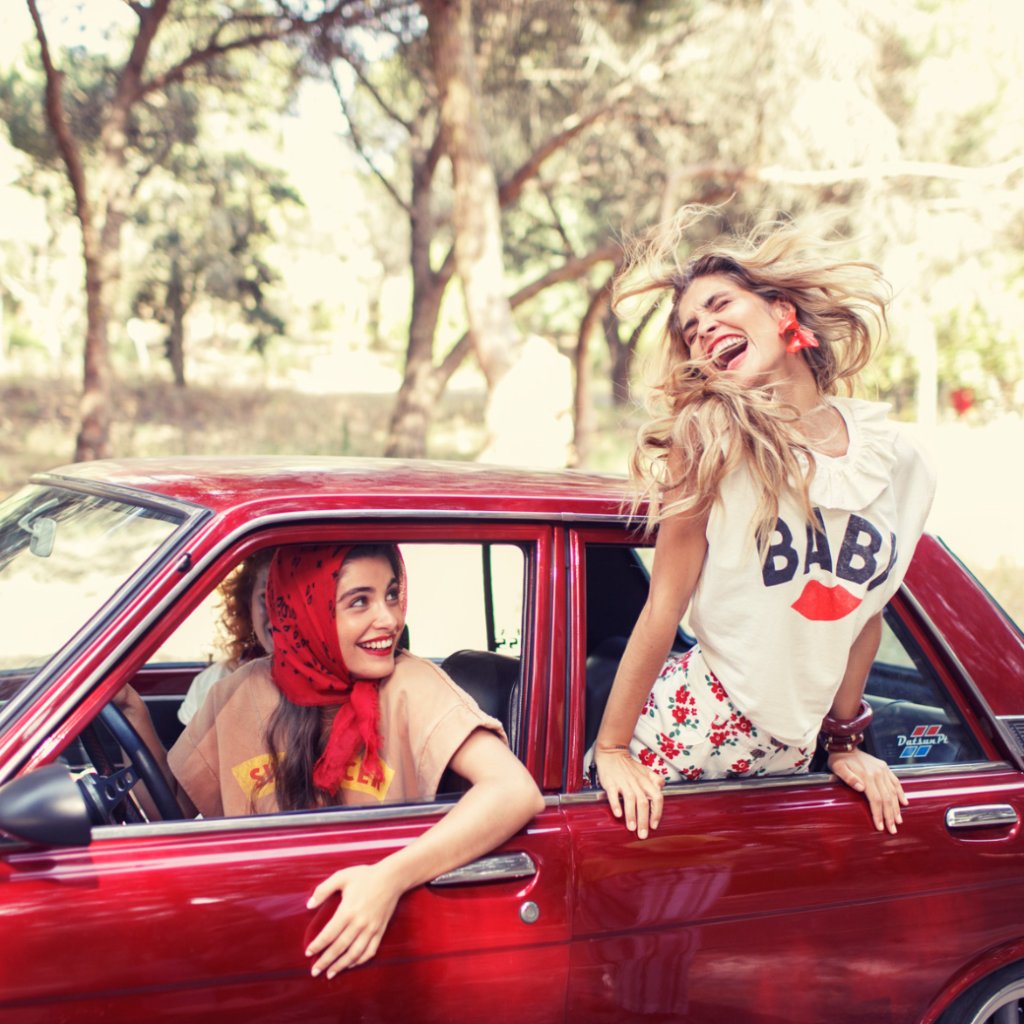 SISTERS DEPARTMENT Dámske tričko s golierom Ecru - Red lip