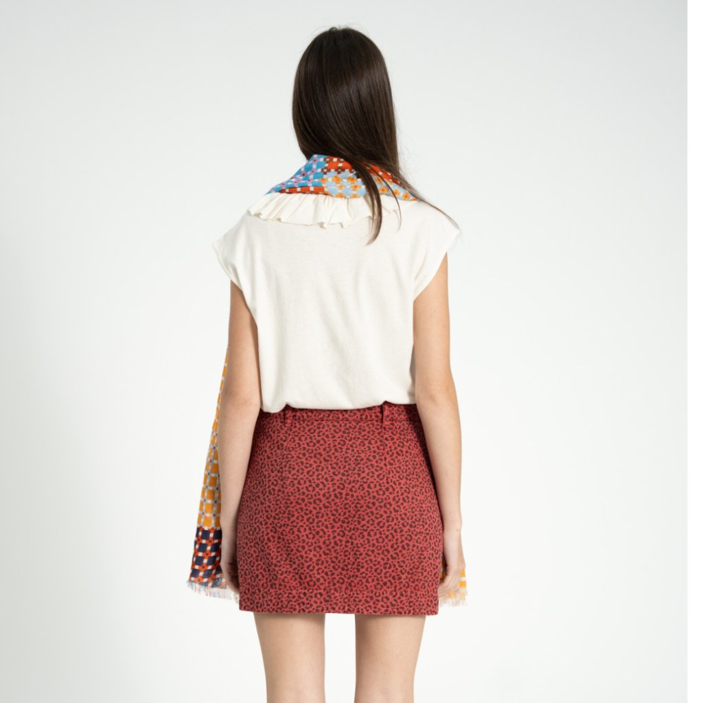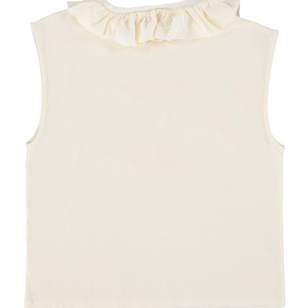Bezrukávové tričko s jemne riaseným golierikom je doplnené potlačou na prednej strane a malým logom. Ľahká zmes ľanu a bavlny zabezpečuje priedušnosť a pohodlie pri nosení, ideálne na teplejšie dni.