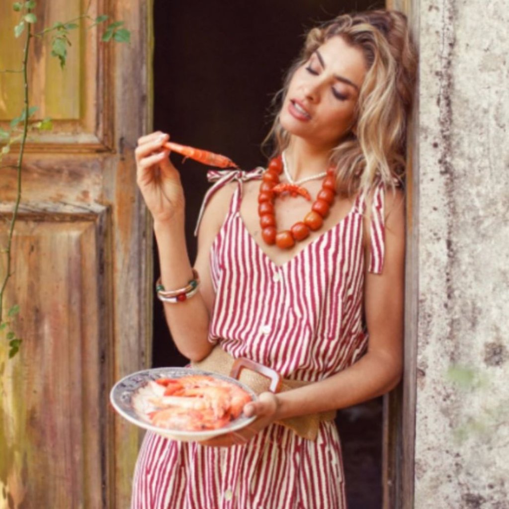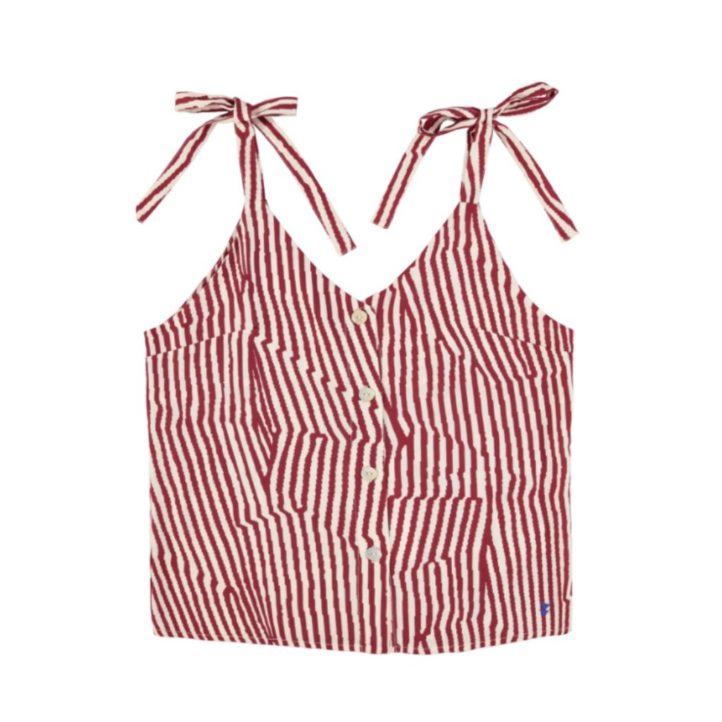 SISTERS DEPARTMENT Dámsky top na ramienka - Ecru & bordeaux stripes