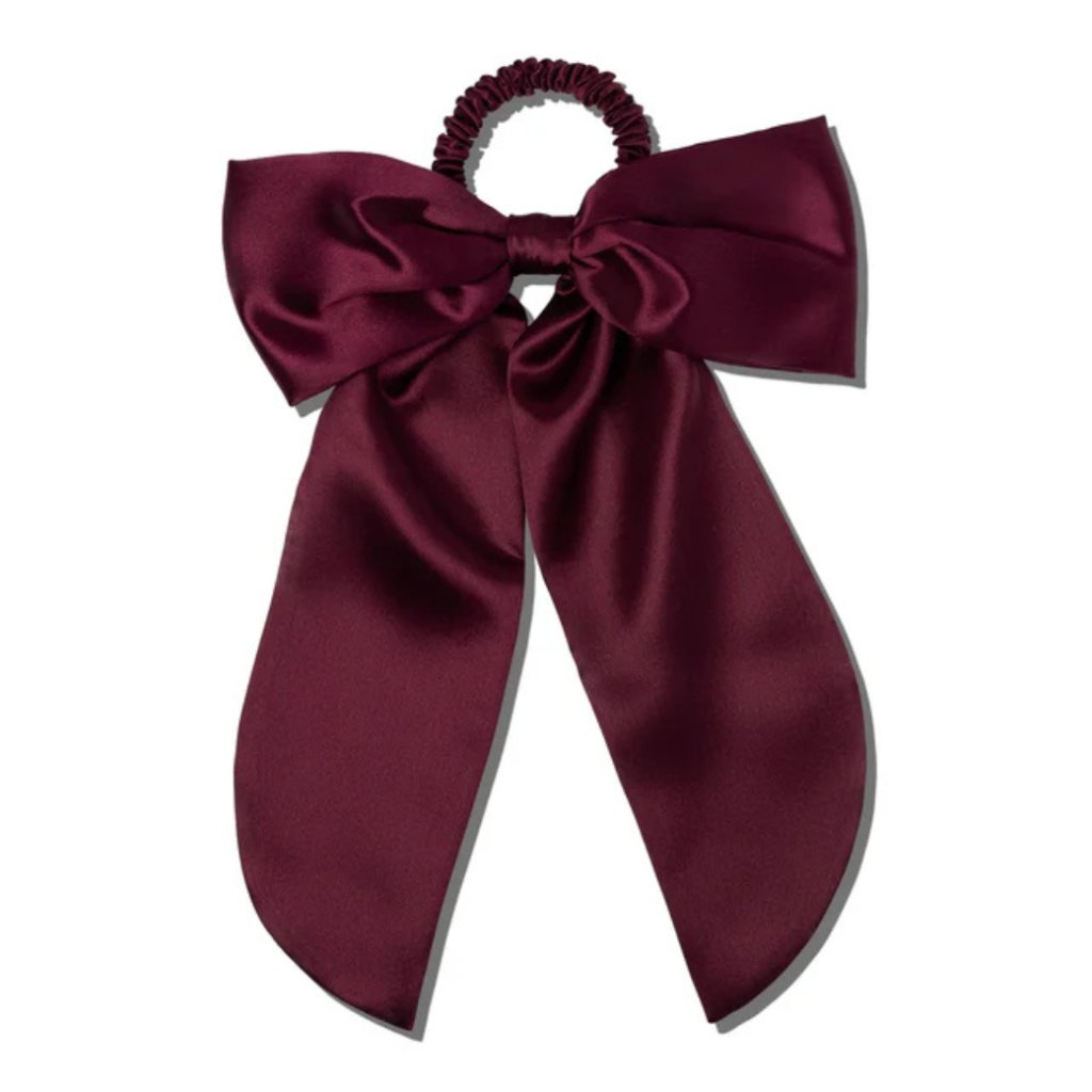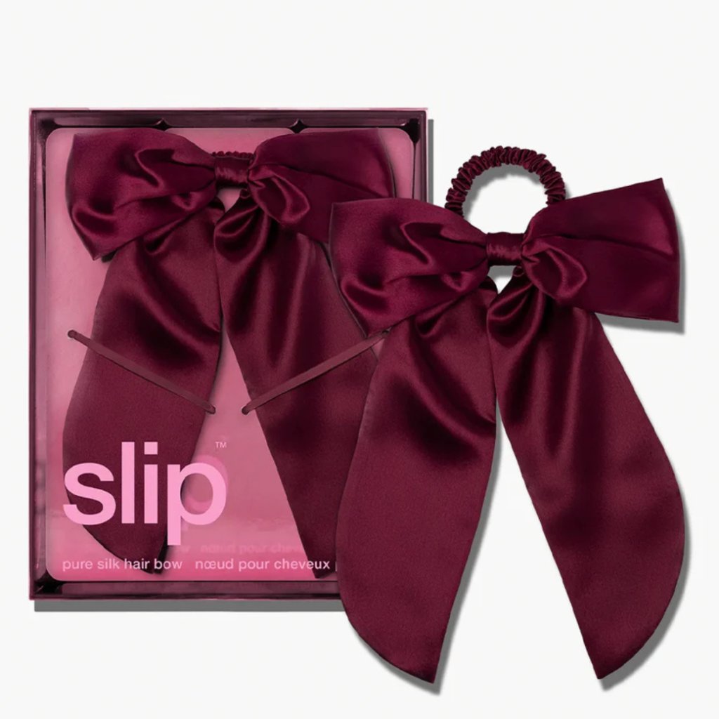 Vínová hodvábna mašľa Slip je navrhnutá tak, aby jednoducho a prirodzene podčiarkla akýkoľvek účes – či ju nosíte v rozpustených vlasoch, copu alebo v zapletených prameňoch.