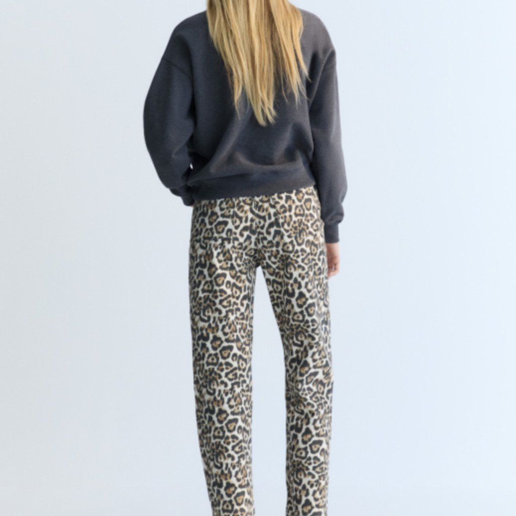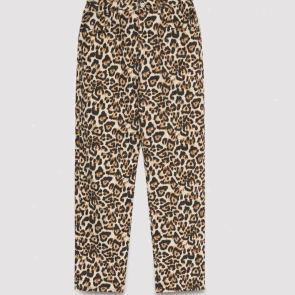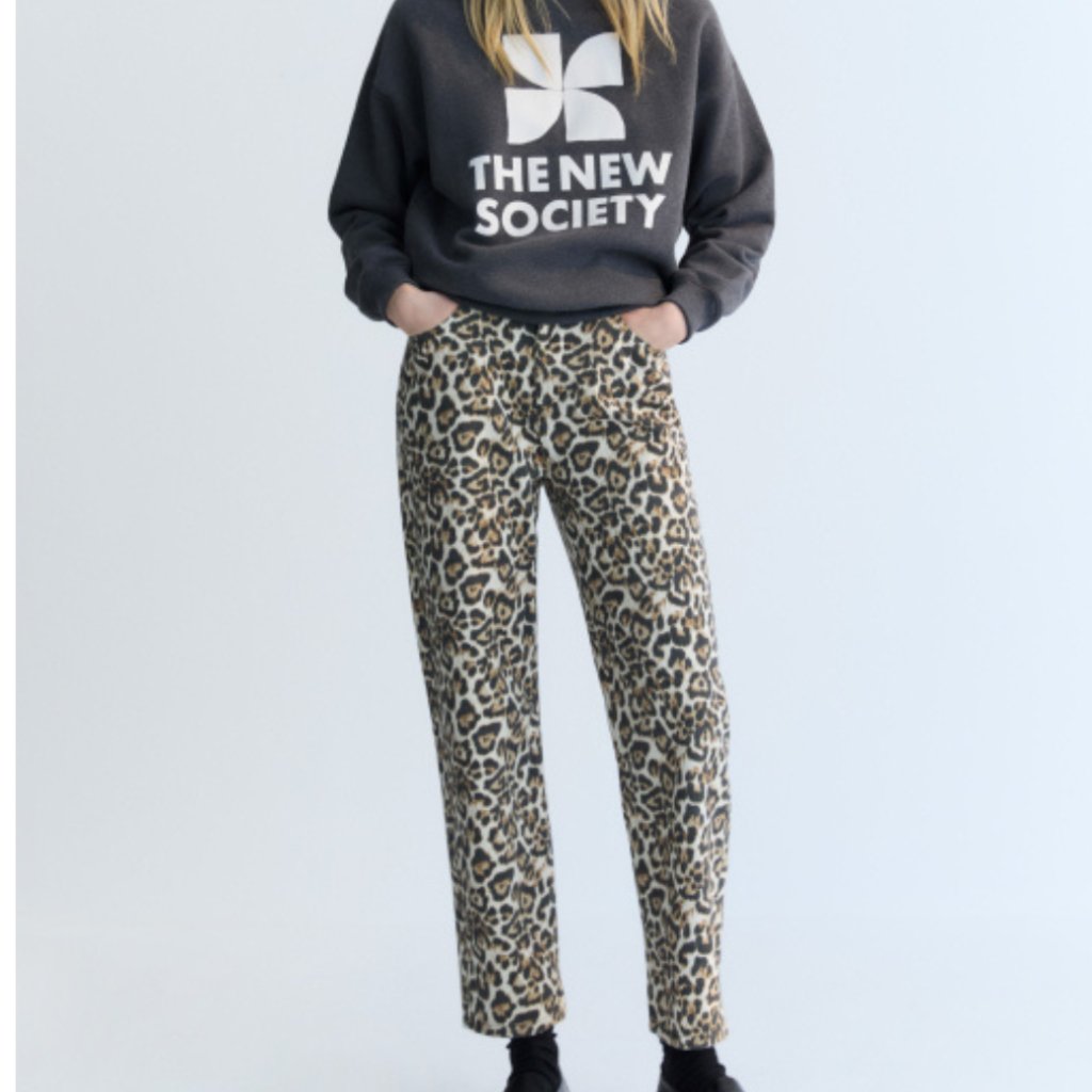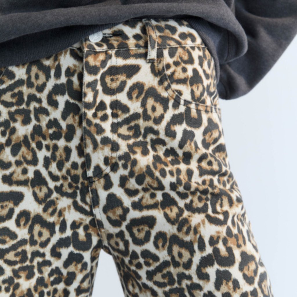 Rovný strih džínsov s výraznou a štýlovou leopardou potlačou – výrazný kúsok, ktorý oživí každý šatník.