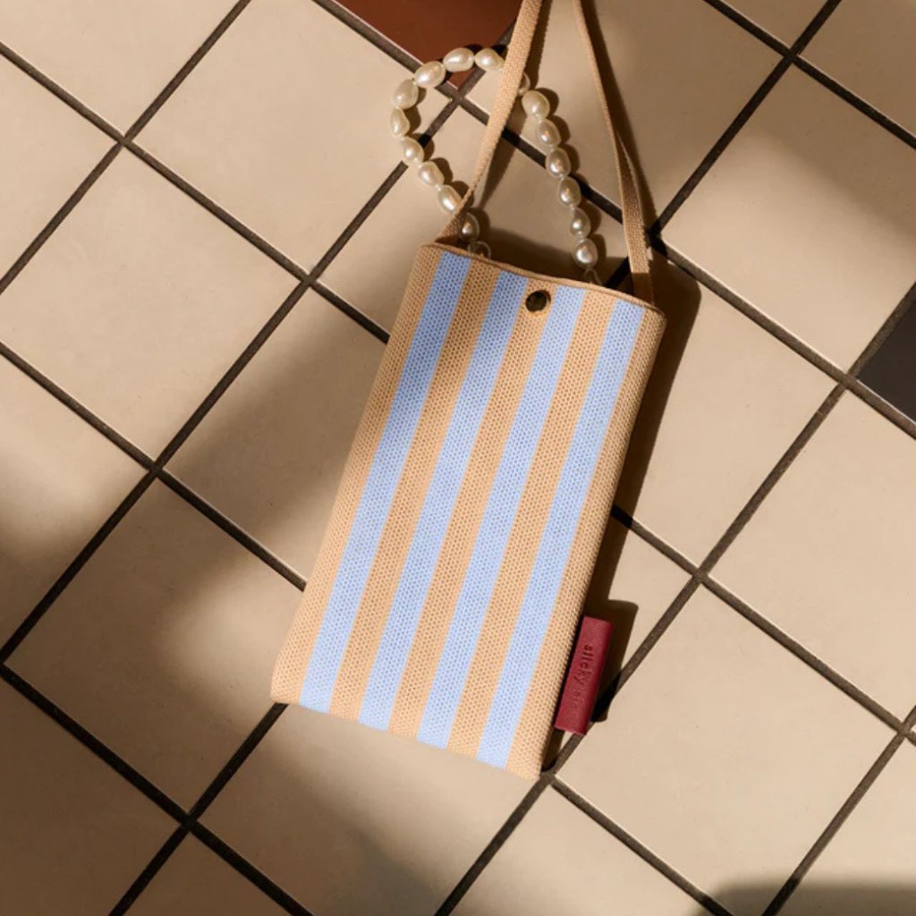 THE STICKY SIS CLUB Taštička na mobil Knitted stripes - marzipan + sky