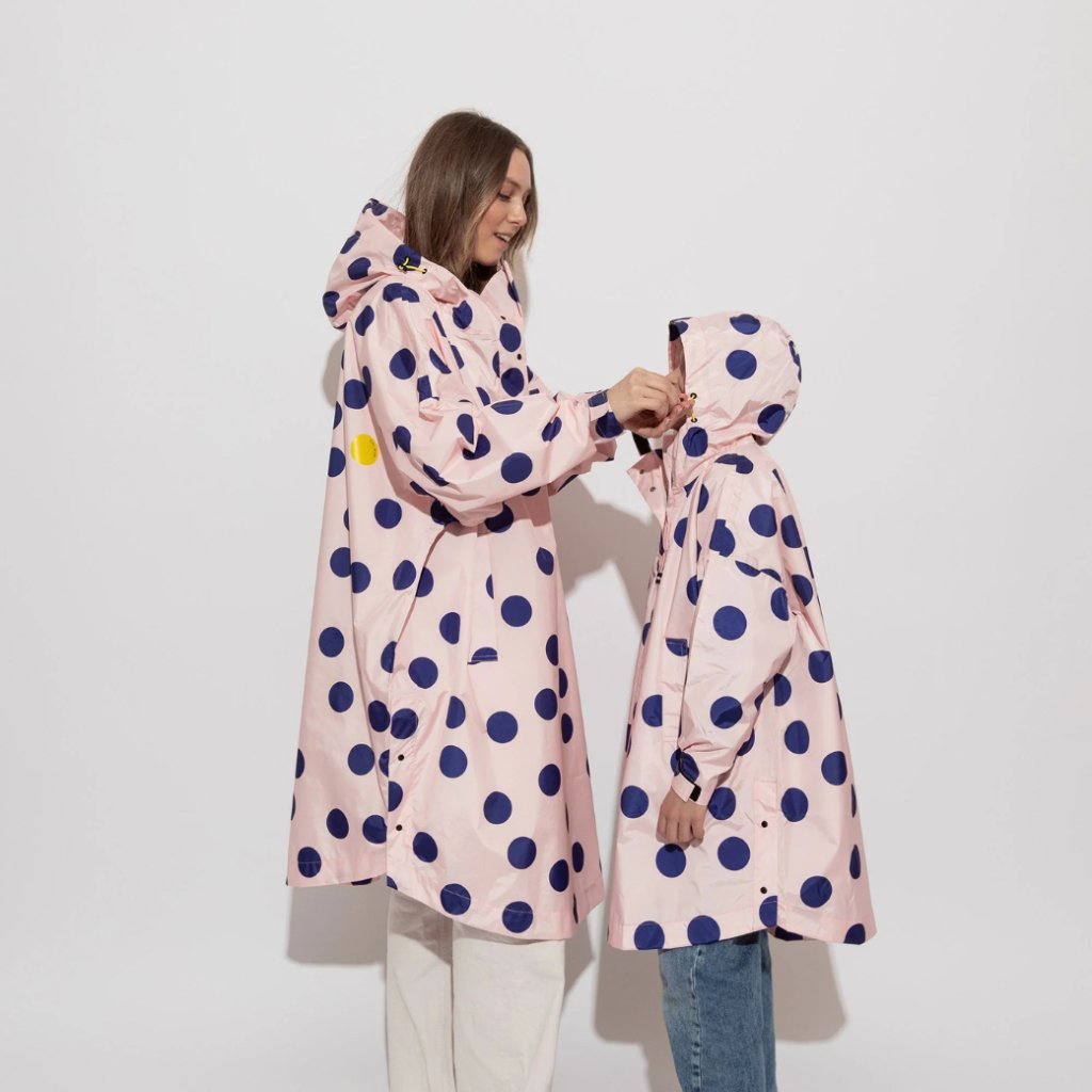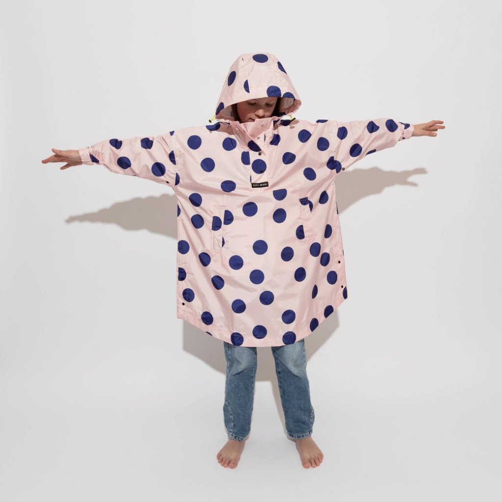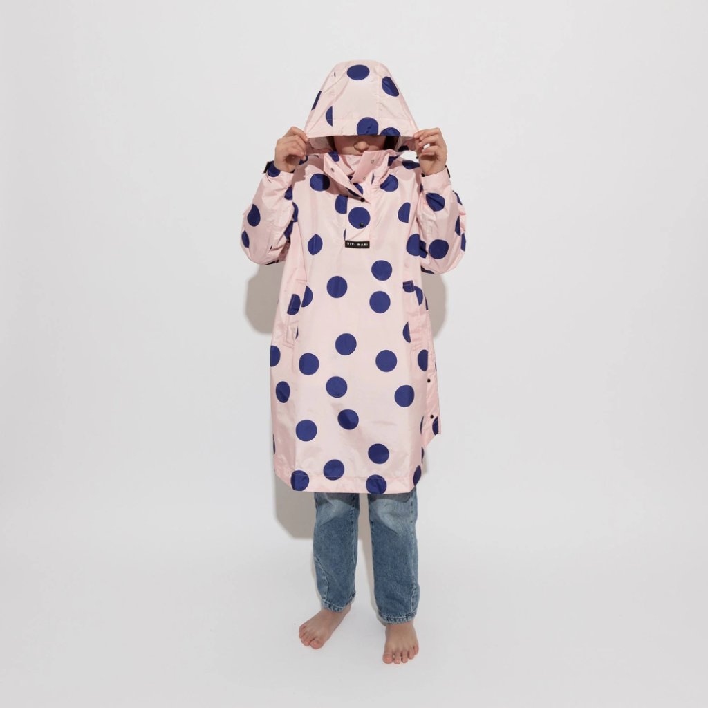 S našou mestskou unisex detskou pláštenkou v oversize strihu (dostupná v dvoch veľkostiach) si deti budú môcť naplno užiť daždivé dni. Pláštenka je vyrobená z recyklovaných materiálov a je úplne nepremokavá. Štýlová „cape“ vrstva s bodkovaným vzorom VIVI MARI ochráni pred dažďom a zároveň sa dá flexibilne nosiť aj cez teplú zimnú bundu počas chladných dní.