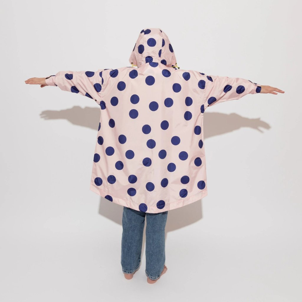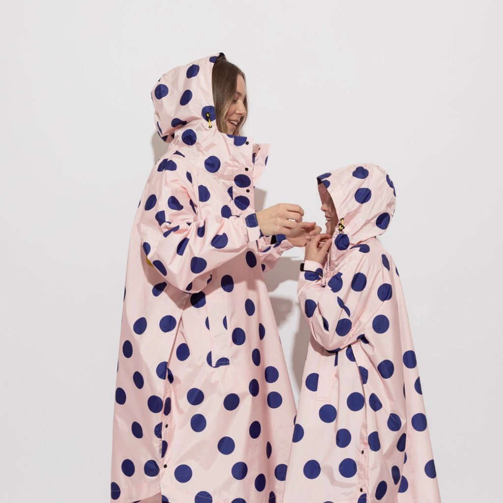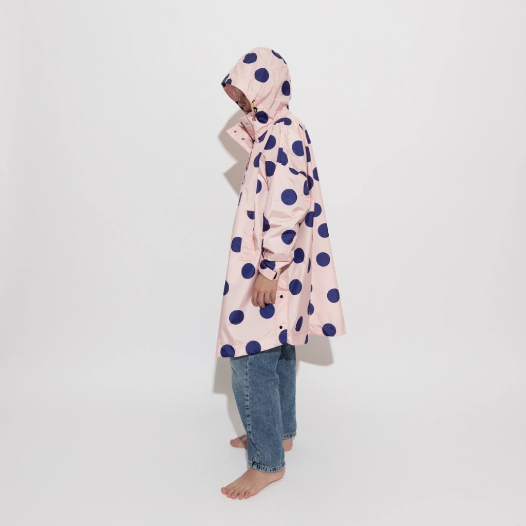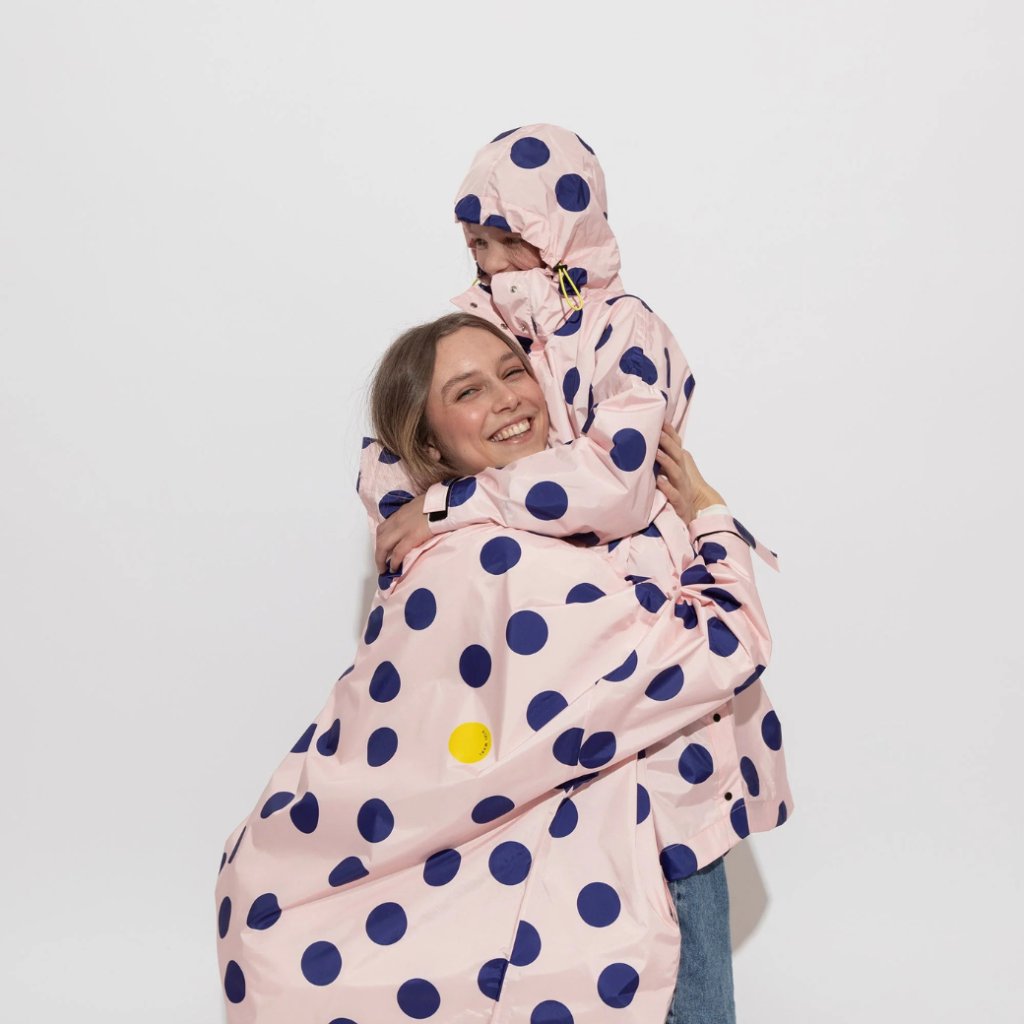 S našou mestskou unisex detskou pláštenkou v oversize strihu (dostupná v dvoch veľkostiach) si deti budú môcť naplno užiť daždivé dni. Pláštenka je vyrobená z recyklovaných materiálov a je úplne nepremokavá. Štýlová „cape“ vrstva s bodkovaným vzorom VIVI MARI ochráni pred dažďom a zároveň sa dá flexibilne nosiť aj cez teplú zimnú bundu počas chladných dní.
